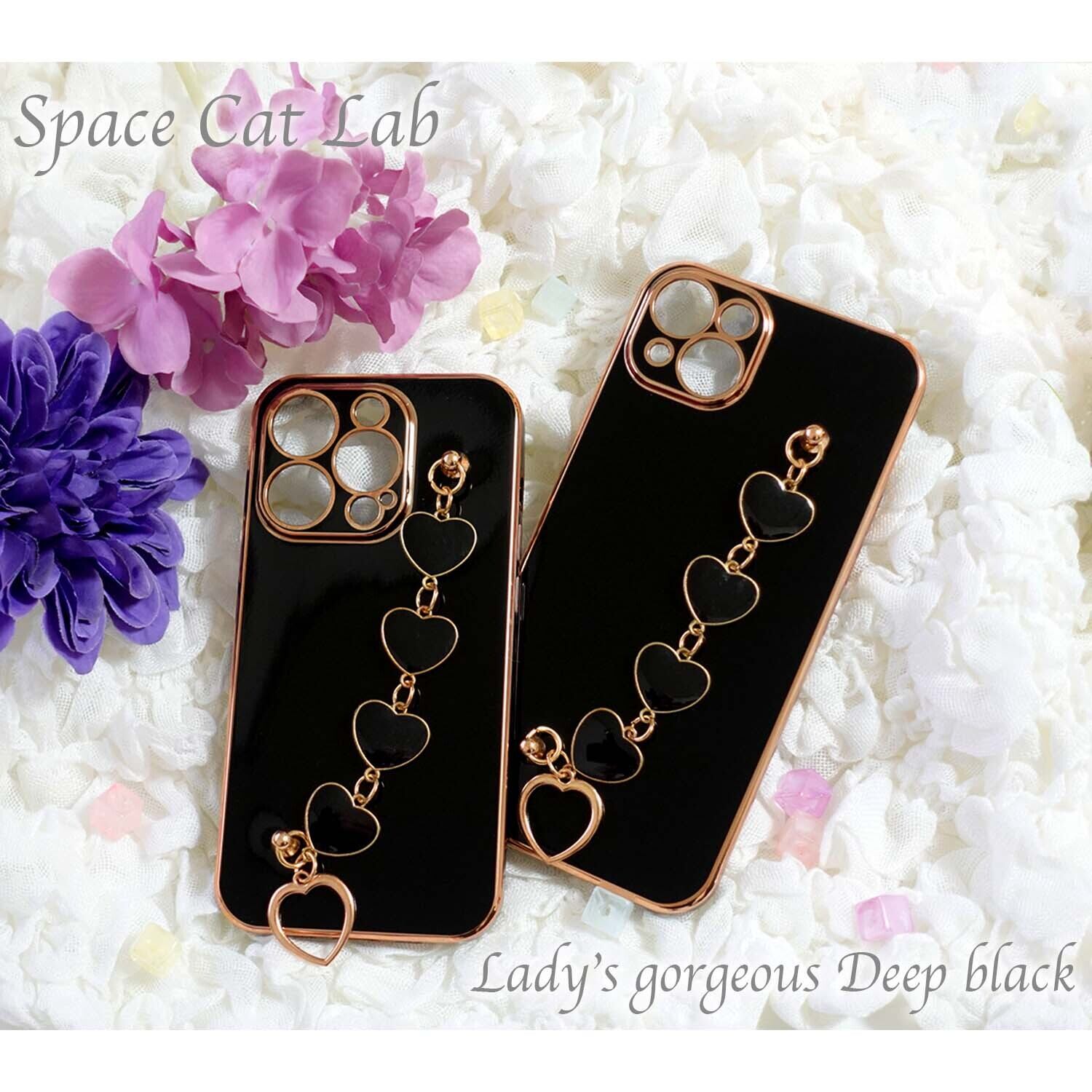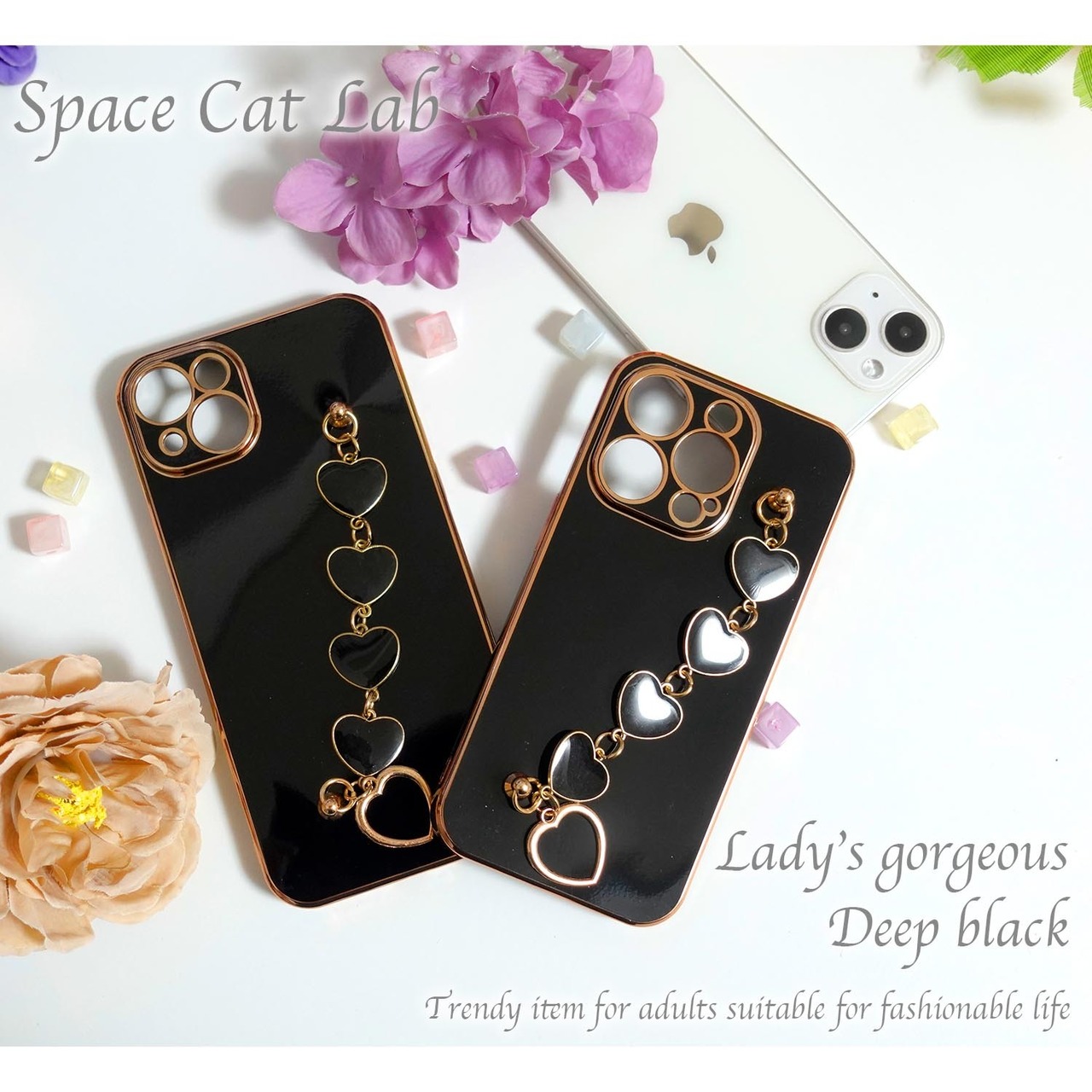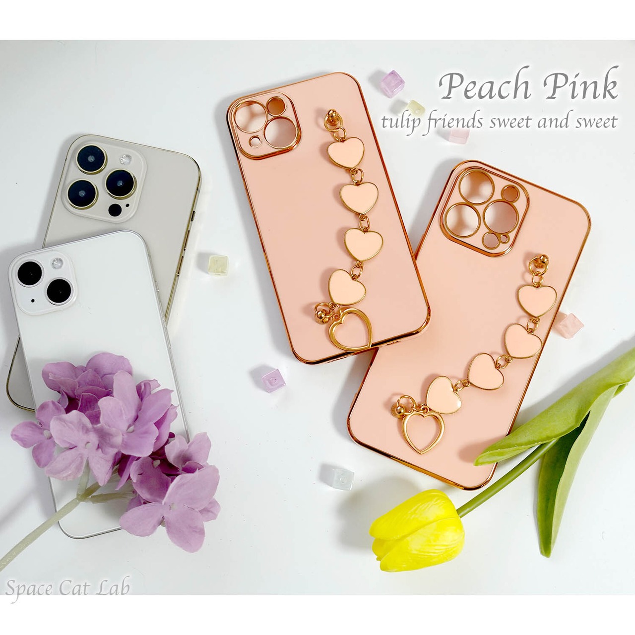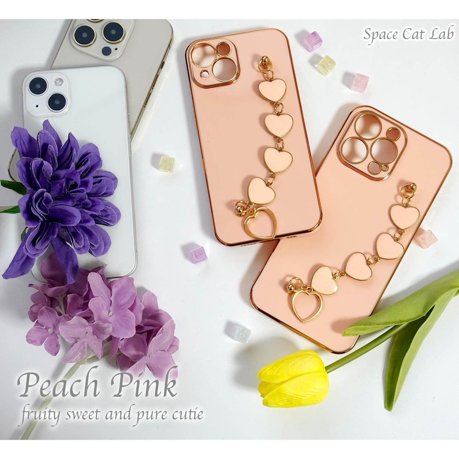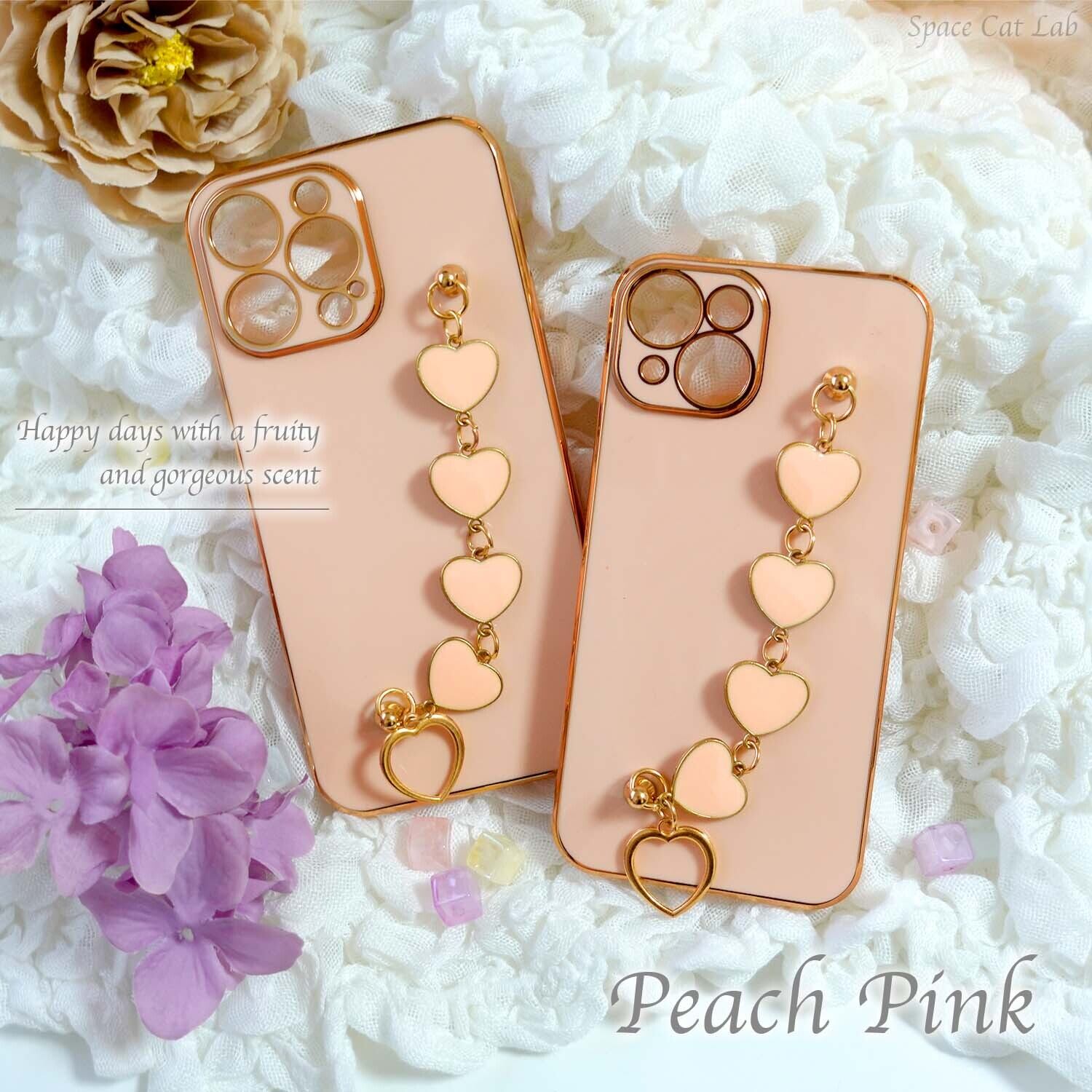 iPhone ProMax ハートチェーン ストラップ ケース (ピーチピンク)