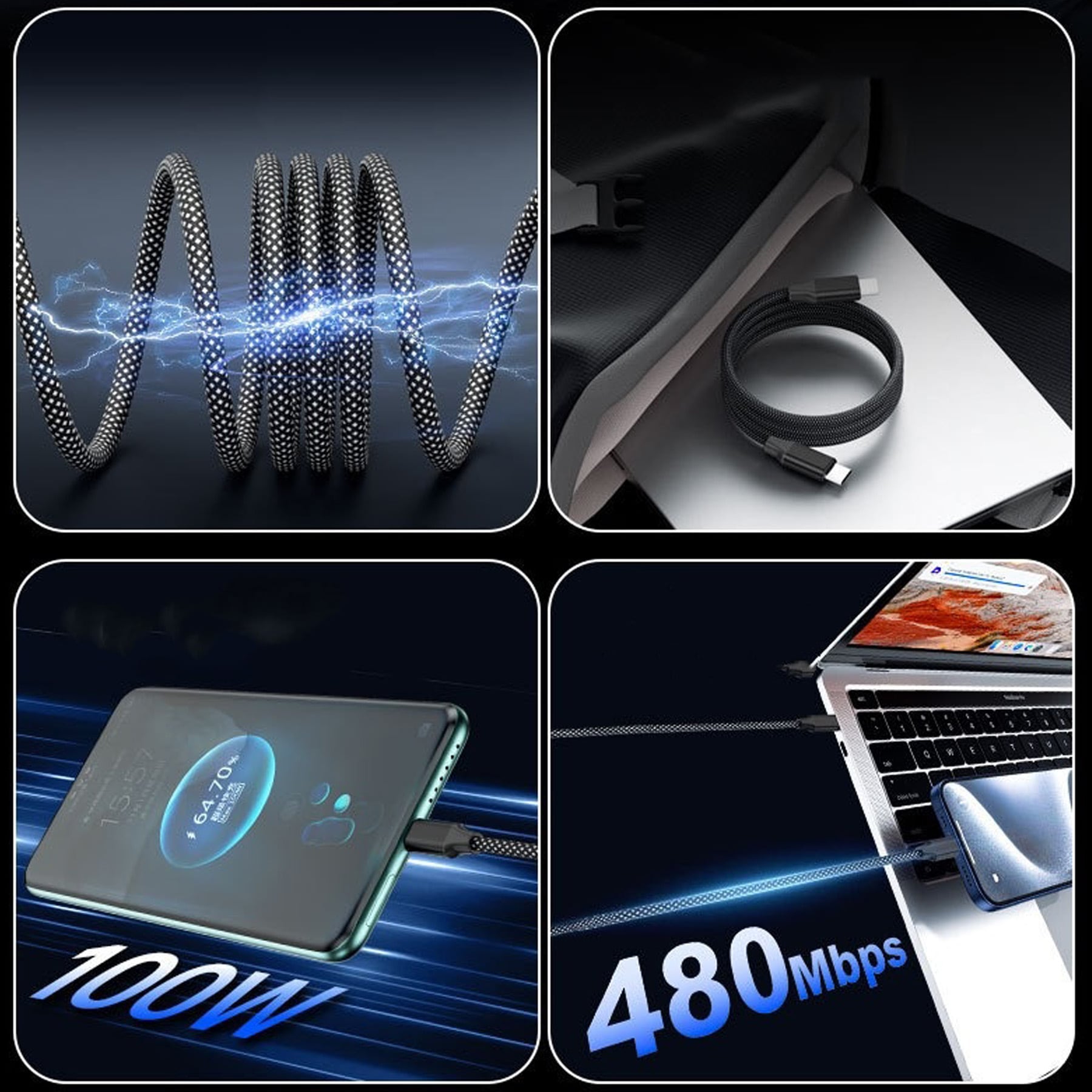 ・素材:ケーブル - ナイロン、コネクタ - アルミニウム